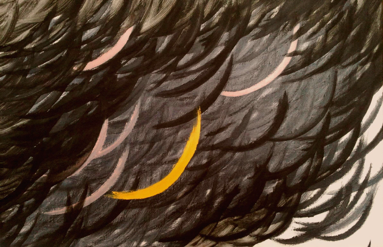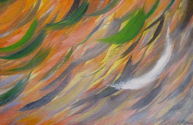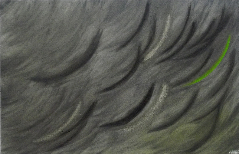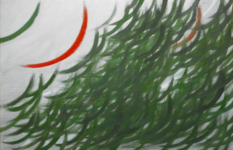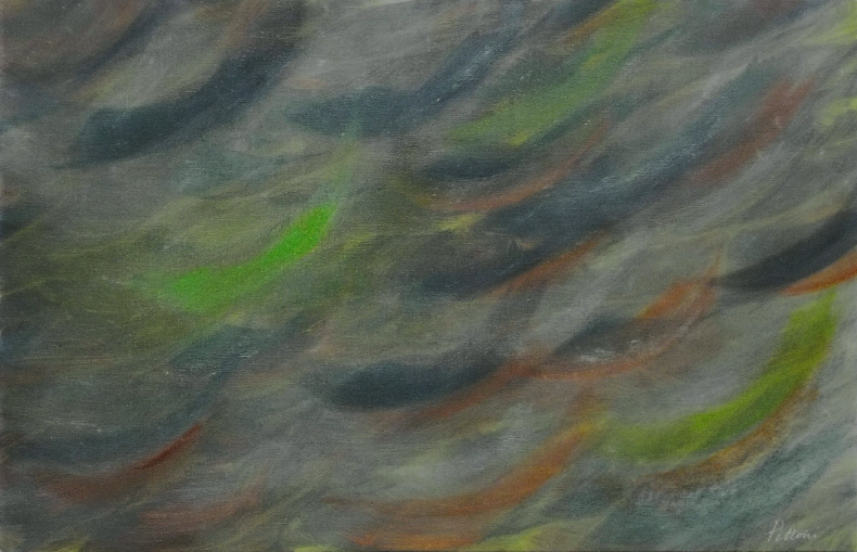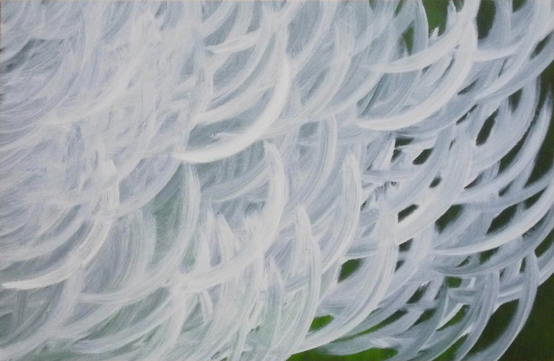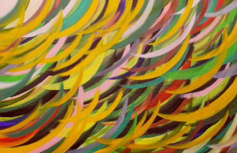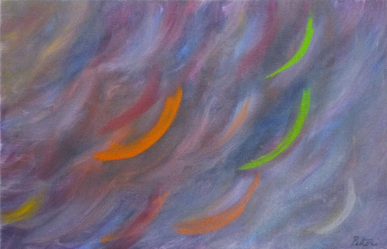 Cette série est née d'un geste... et de sa répétition : une virgule. C'est un peu hypnotique de me chercher, de me perdre dans toutes ces couches successives... alors voici 10 envolées pour 10 moments de pur plaisir de peindre, les toiles, posées au sol, autour desquelles je tourne dans tous les sens.